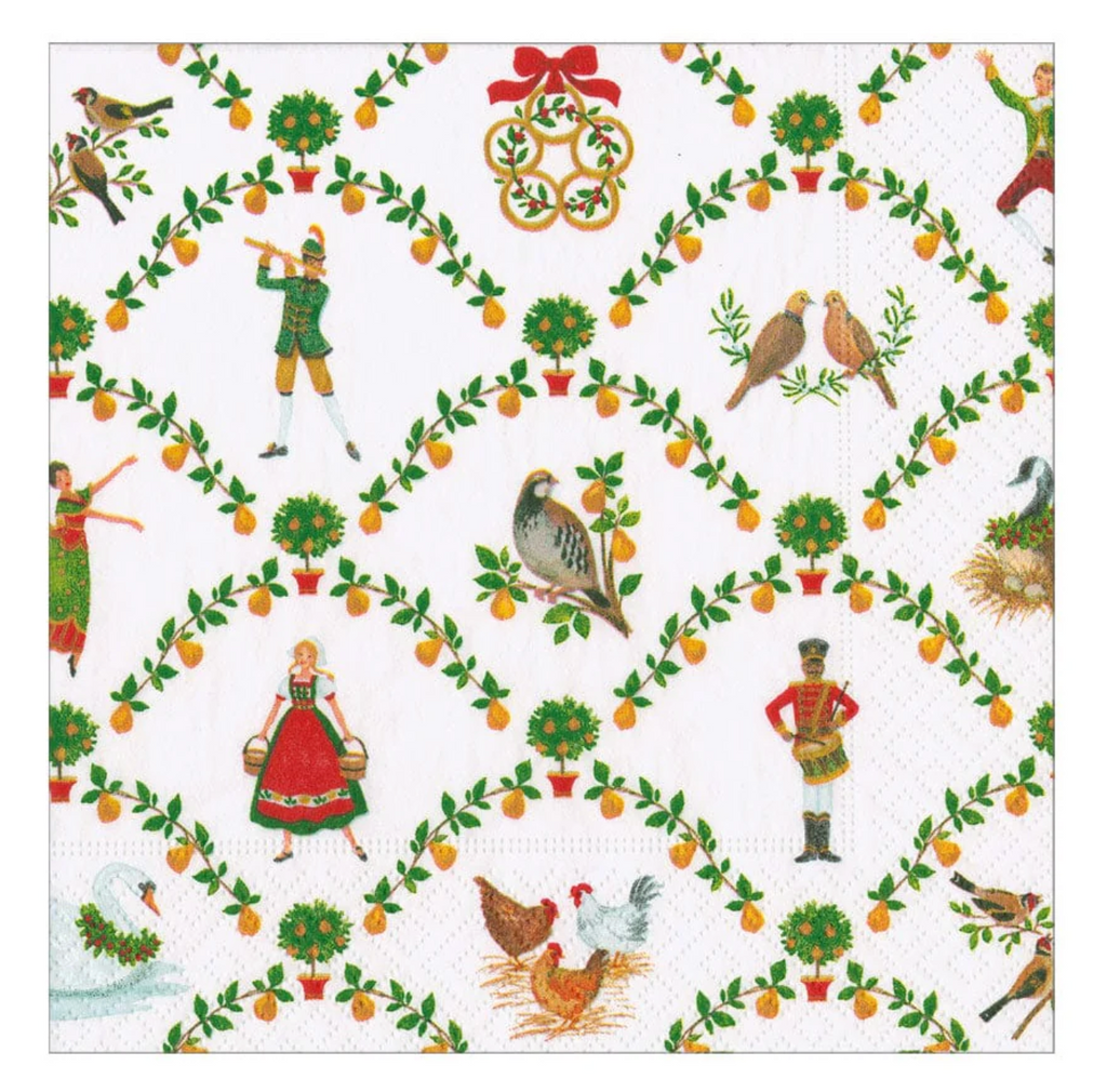 Caspari On The Twelfth Day Of Christmas Luncheon Napkins - 20pk