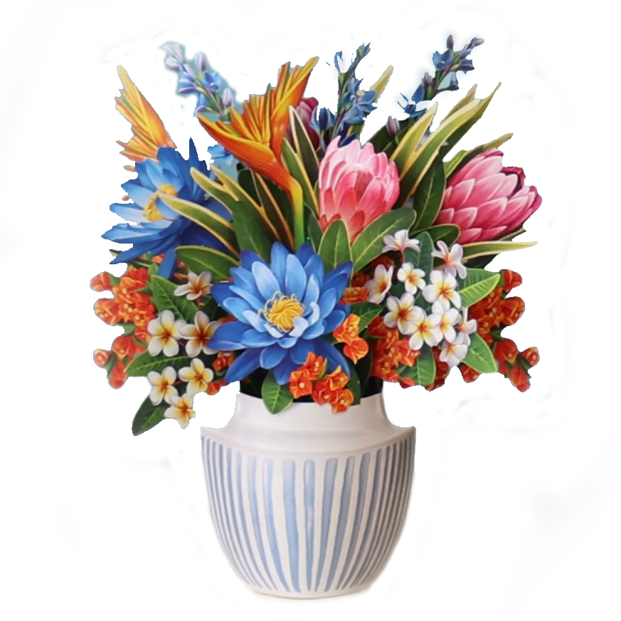 Fresh Cut Paper Mini 3D Pop Up Greeting Note Card – Tropical Paradise – 6" x 5"