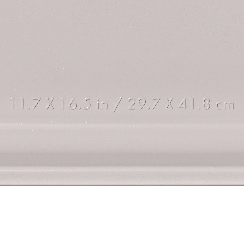 The half sheet pan is perfect for baking a dozen cookies or a whole fish. The efficient ceramic non-stick coating heats quickly and evenly, allows for easy food release and protects against scratching, staining, corrosion and abrasion. Get consistent results – the light interior coating color has been optimized for even browning for both sweet and savory baking.