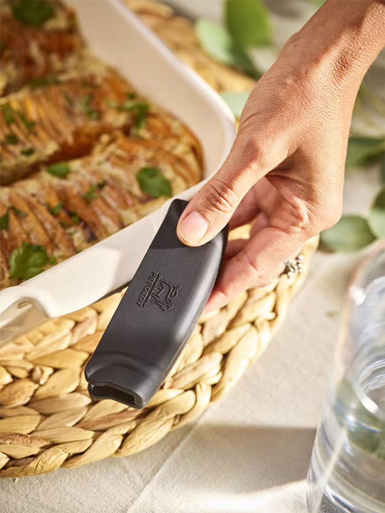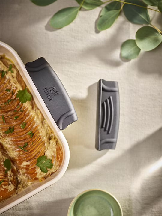 Resistant to temperatures of up to 250° and made from high-quality black silicone, these handles allow you to grip your cooking utensils in complete safety. Ideal for carrying ceramic dishes from the oven to the table, they also allow you to handle pots and pans with side handles without risk.